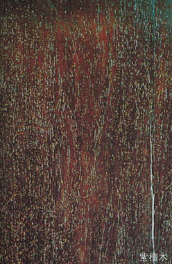 | 中国伝統家具の中で最も珍貴な木材で、「青龍木」とも称されている。まめ科の常緑高木で、材は暗紫紅色で美しく、堅ろうで、水に入れると沈む。20種類以上の品種があり、おもに熱帯のアメリカ・アフリカ・インド・ベトナム・ミャンマー・南洋群島などに産し、中国内では広東・広西・雲南で産出するが、その数量は多くない。紫檀の成長は緩慢で数百年では成材にならないとされ、「木中之王」の美称がある。